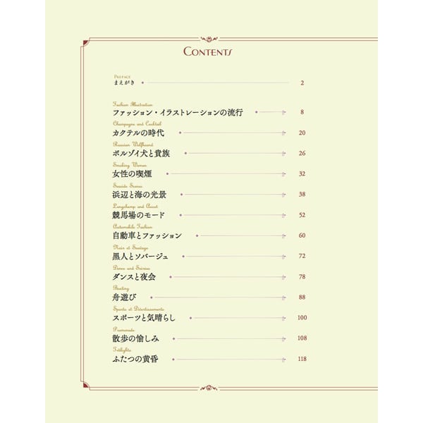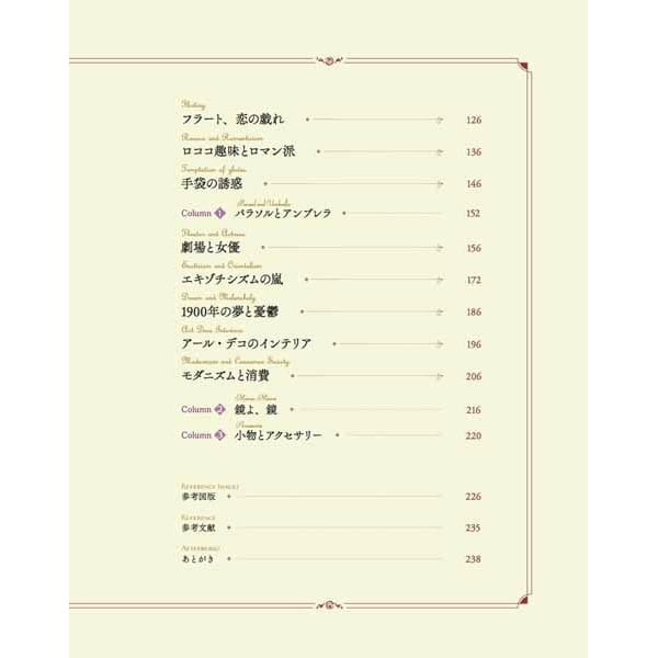 内容は著者がコレクションしてきた20世紀初頭の高級モード誌『ガゼット・デュ・ボン・トン』完本などからの膨大な量の挿し絵をテーマ別に編集し、