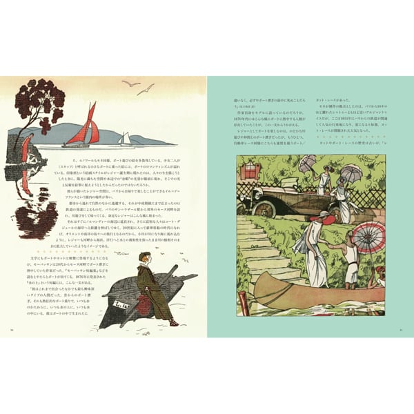自動車や舟遊びや喫煙や散歩、黄昏などといったテーマを美しいポショワール画で彩りながら、それぞれ世紀末から1920年代にかけての文化史として記述しています。