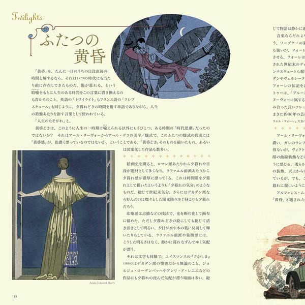 「ロココ趣味とロマン派」では、アール・デコの挿し絵になぜ、この二つの様式を題材にしたものは多いのかを分析しています。
