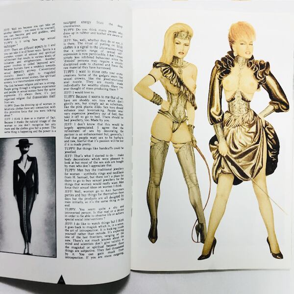 お決まりのパーティシーンから始まって、カラーでいくつものフェティッシュ・ファッションの特集が組まれています。